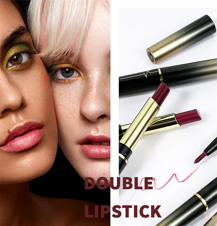 - It has two heads with a lipstick on one side and a lip liner on the other side.