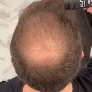 The sweat-proof fiber powder is made of colored keratin protein that sticks and blends undetectably with existing hair strands.